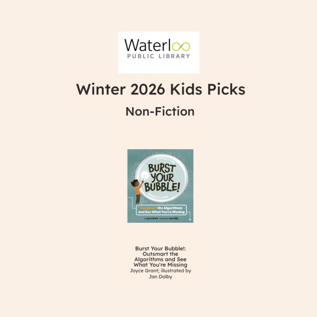 Thank you to the Waterloo Public Library in Waterloo, ON, for selecting Burst Your Bubble! as a non-fiction kids pick for Winter 2026. See their list of other great recommendations here: https://www.wpl.ca/browse-borrow/featured-reads/